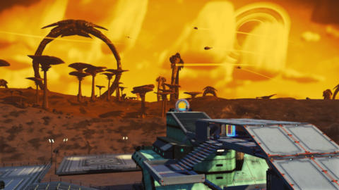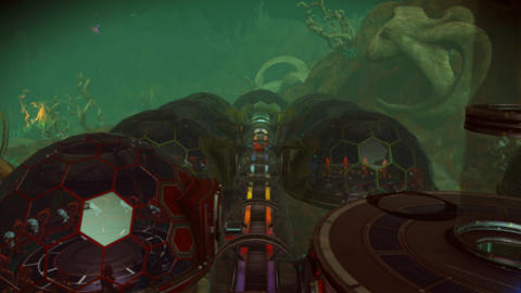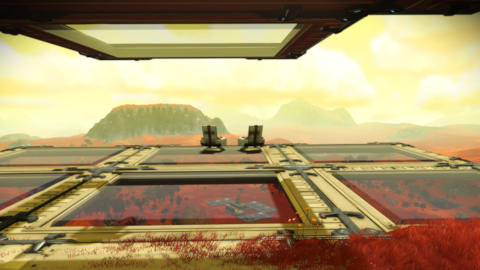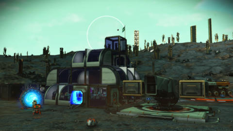 This base is built atop a high mesa on a desert moon, and features a long protruding glass walkway inspired loosely by the "Infinity Room" at the real life House On The Rock, a bizarre tourist attraction in Wisconsin. An unusual density of other structures are all a short hop away: the wreckage of a large freighter, a trade platform, a Holo-Terminus, and an abandoned structure infested with monstrosities. Portal Glyphs: Galactic Coordinates: 019C:0083:0764:00A7 |