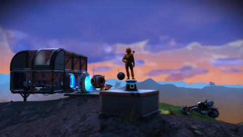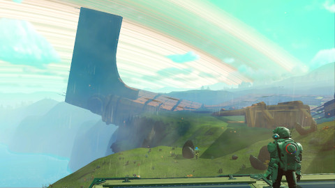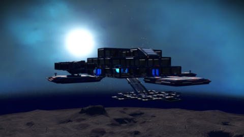 NMS subreddit user Faelenedh posted this dramatic screenshot of a crashed freighter hanging out over the edge of a cliff, and I was captivated. Learning that this planet is in the remote Elkupalos Galaxy didn't deter me from taking the long trip there to see it for myself, and set up a simple distant observation platform. (Note that if you wish to visit this base you will also need to travel to Elkupalos Galaxy, a feat not easily done but mostly a matter of time and planning.) Portal Glyphs: Galactic Coordinates: 0CA6:007D:048D:00F1 |